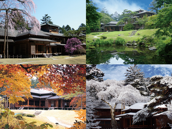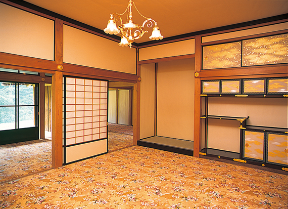 明治期に造営された御用邸の中でも最大規模の木造建築で、本邸が現存する唯一の建物です。江戸・明治・大正と三時代の建築様式をもつ集合建築群で、これらの建物の併用が、当初から存在したかのように建てられているところに、大きな特徴があります。