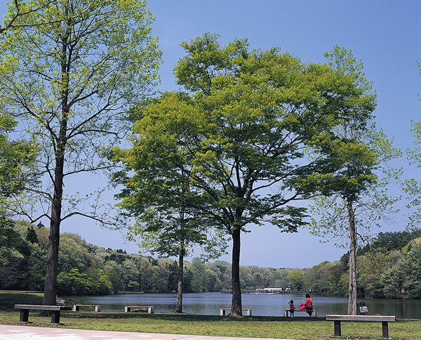 93haの敷地は井頭池を中心に丘陵地とコナラ・クヌギ・アカマツなどの雑木林が広がり、四季折々の自然が楽しめる。