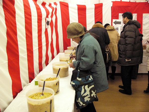 歴代鉄人のしもつかれを販売するほか、一般来場者も試食して投票でき、最も多く票を獲得した出品者が鉄人の座を手にします。味付けやサケの頭の使い方など参加者が工夫をこらしたしもつかれをミニカップで味比べができます。