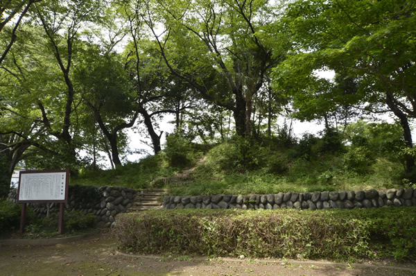 栃木市城内町。1591(天正19)年、皆川広照の築城。現在東二の丸の北部の土塁と堀がわずかに昔日の面影をとどめている。