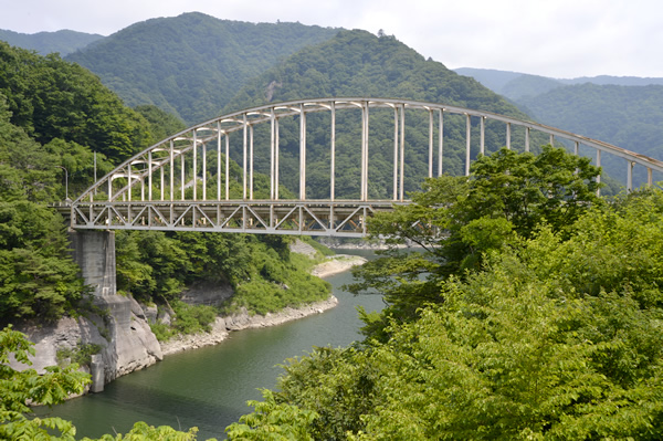 日光市国道121号線上の、五十里湖に架かる橋長117mのアーチ橋。