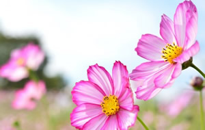 熱帯アメリカ原産のキク科コスモス属の総称。開花期は7月~11月頃。アキザクラ(秋桜)とも呼ばれ、秋の季語としても用いられています。 美しい花の姿からコスモスはギリシア語の「kosmos」に由来し「美しい」に由来し、「秋桜」の由来は「ある歌謡曲のタイトルでコスモスと読ませたから」や「秋に咲き、花びらが桜に似ていることから」など諸説あるようです。